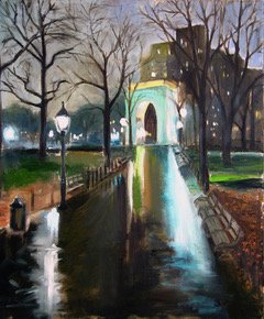 Washington Square Park Rainy Night in Autumn